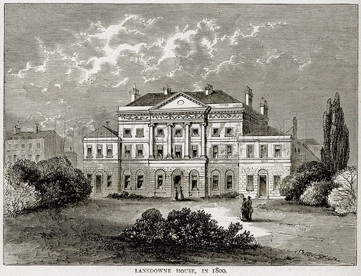 During my last visit to London, I stayed near Berkeley Square and took frequent walks around the Square. Sadly, only a few of the original buildings remain. Lansdowne House is one of those buildings, except the structure has been altered over the years. It is now an office building and private club. It stood next to Devonshire House until that building was torn down in 1920. Lansdowne House was designed by Robert Adam for Prime Minister John Stuart, 3rd Earl of Bute. In 1765 it was sold, unfinished, to William Petty-Fitzmaurice (1737-1805), Earl of Shelburne, later 1st Marquess of Lansdowne and a leading Whig statesman of the period. His home was a popular meeting place for social and political circles. Information on the dining room of this home can be found elsewhere on this website.