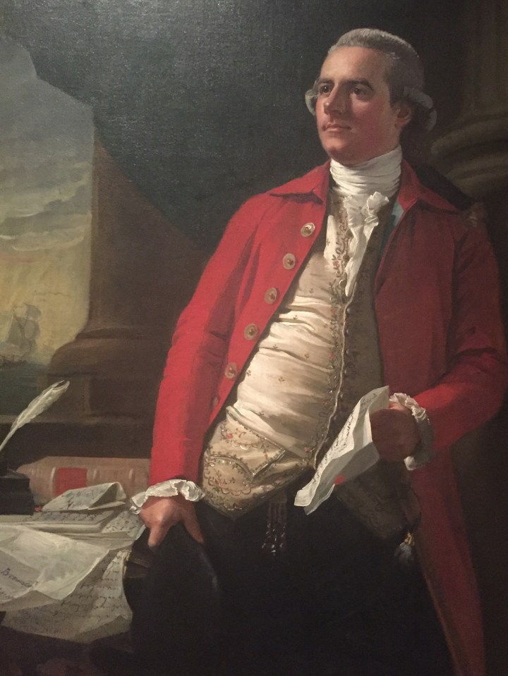 Another American gentleman who paid a visit to court was Elkanah Watson. Mr. Watson was a businessman who went to Versailles in 1779 to deliver dispatches from the Continental Congress to the French foreign minister. It’s likely that in this portrait he is wearing the suit he acquired in Paris earlier in his trip. After he delivered the dispatches, Mr. Watson left for England, where he commissioned this portrait. According to the placard that accompanied this painting, he is known to have appreciated the portrait for its appealing naturalism. It’s hard to see here, but worth noting that the ship in the background flies the American flag, which symbolizing George III’s formal recognition of the United States. This would have been especially important to someone like Elkanah Watson.